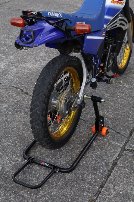 El caballete levanta la moto enganchándose directamente en esos spools.