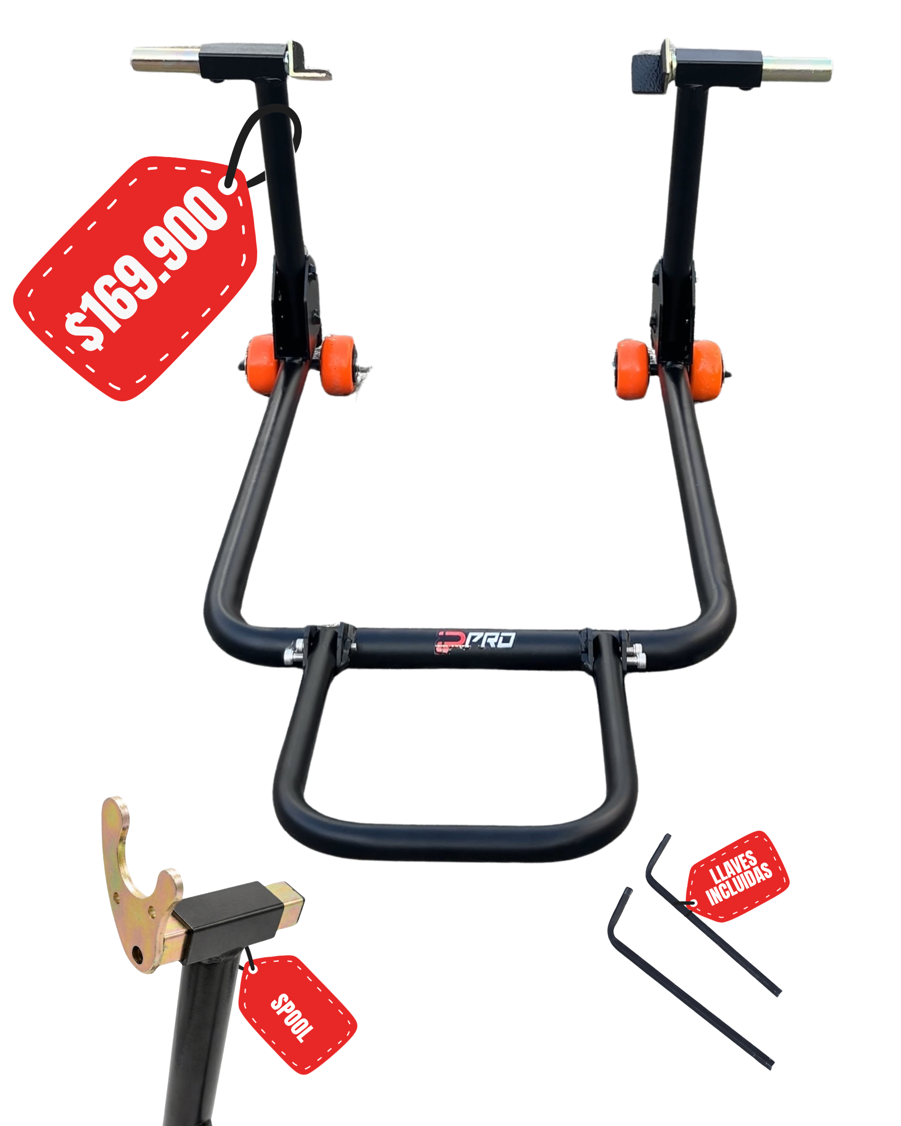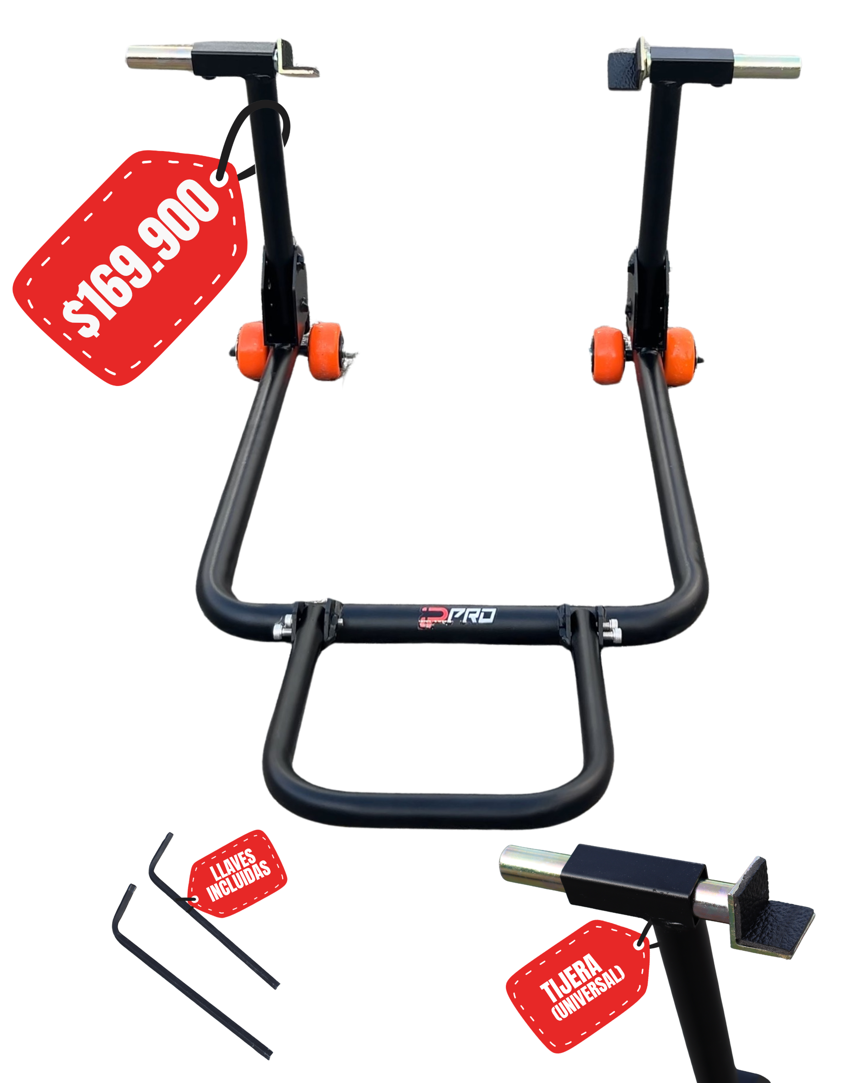 Nuestro caballete para moto está diseñado pensando en la seguridad y estilo. Su estructura robusta soporta cualquier modelo de moto, mientras sus colores aportan un toque urbano que combina perfectamente con tu estilo de vida.